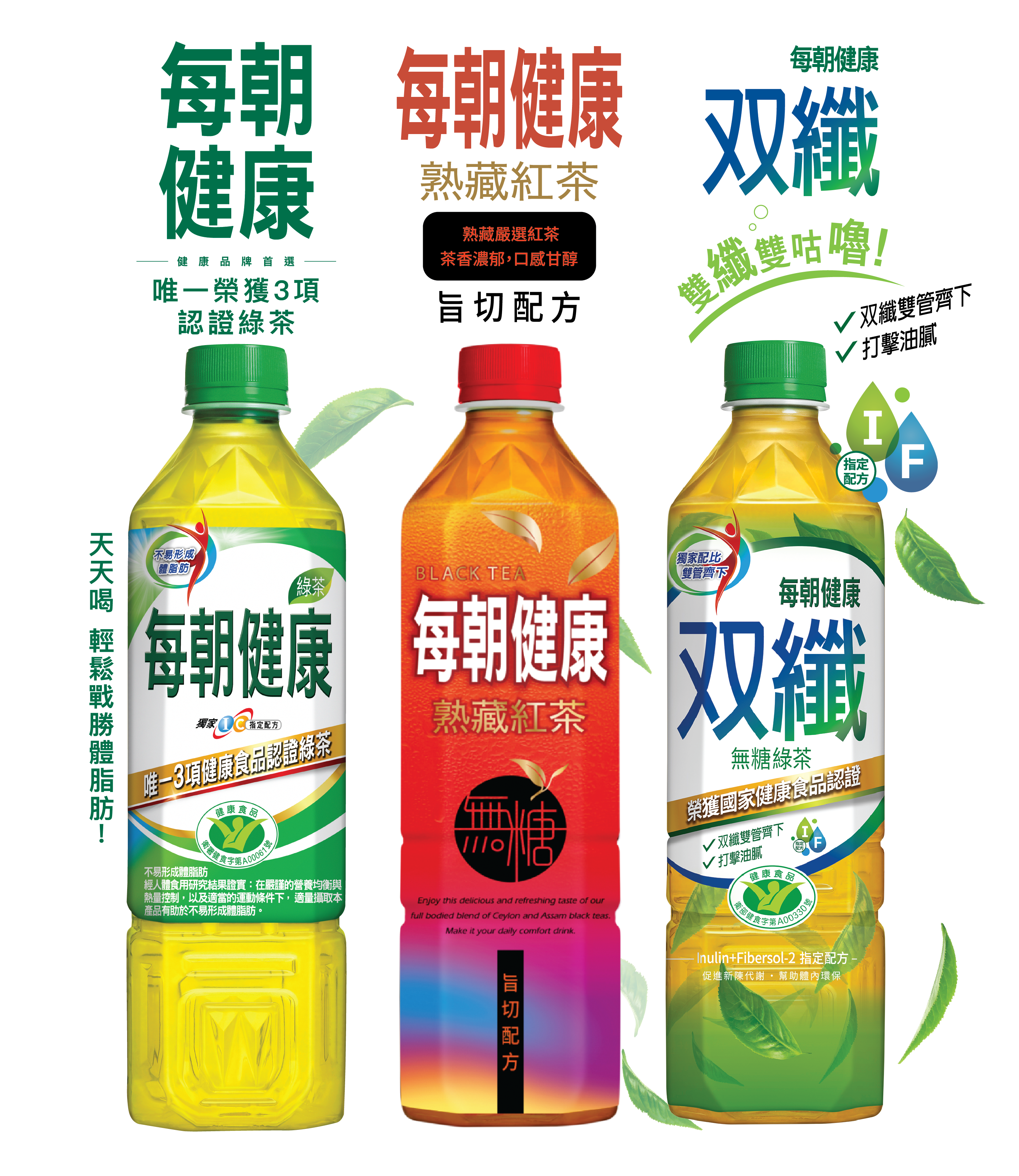 Developed in 2005, Every Morning Healthy Green Tea with its unique formulation of Inulin and Catechins in their sugar-free green tea is Taiwan's first tea beverage to be certified with three national health food certificates: Reduce body fat, Maintain bowel health & Regulate blood lipid function.